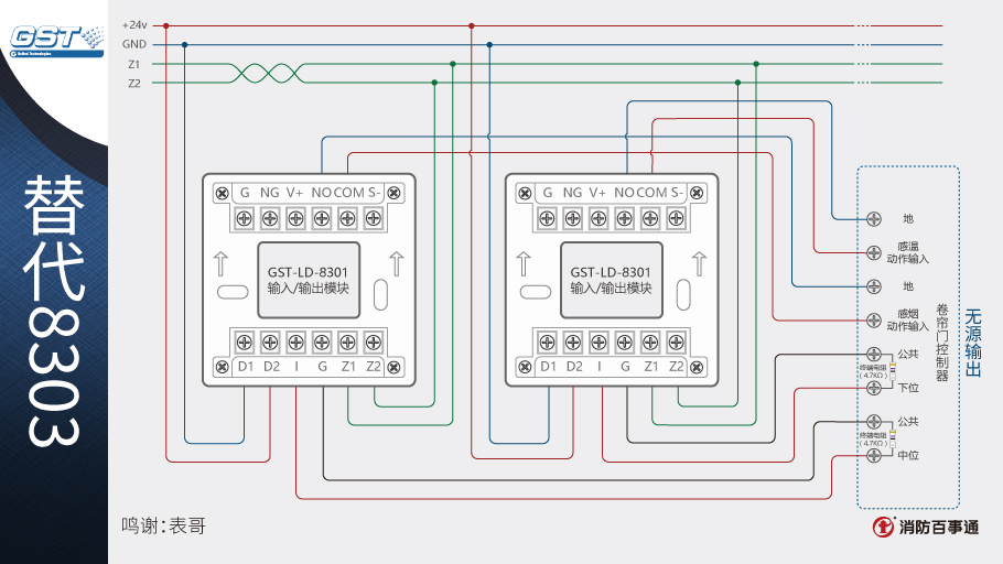 1、海灣8301模塊可以替代海灣的8303模塊控制防火卷簾,兩個(gè)8301模塊相當(dāng)于1個(gè)8303模塊。